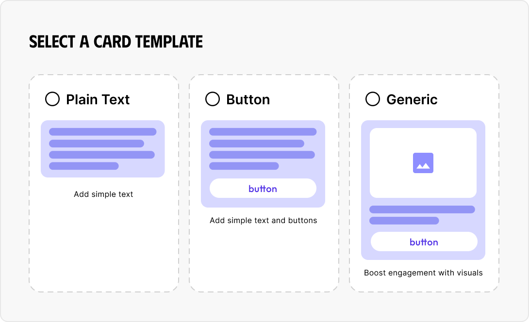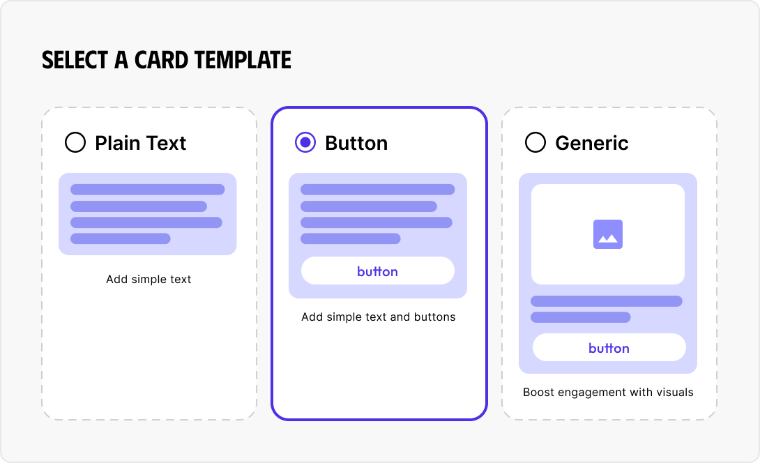 A simple text-only message. Ideal for quick greetings, basic replies, or low-friction call-to-actions.