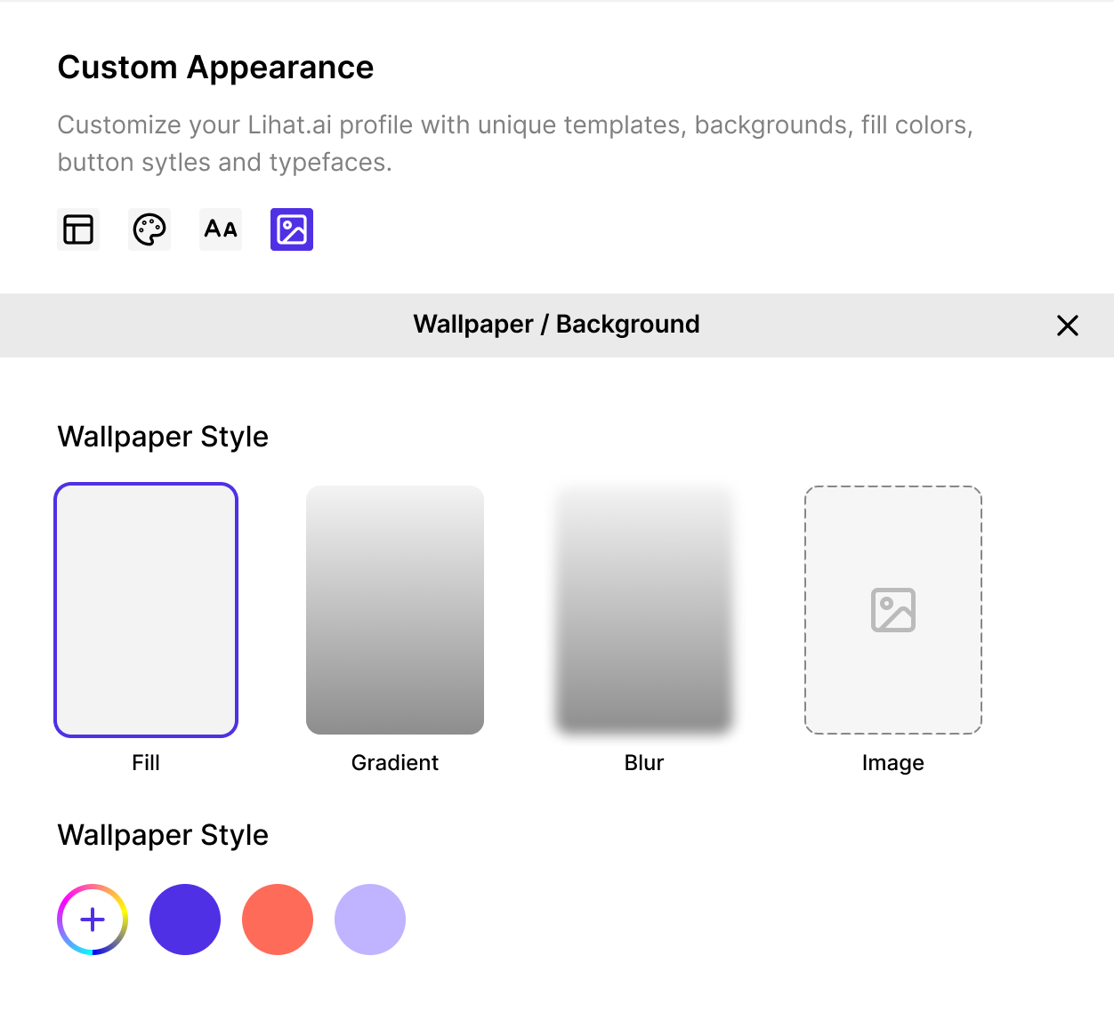 The Custom Appearance section gives full control over your page’s visual style.