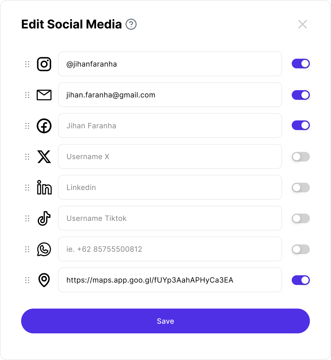 Connect your social accounts (Instagram, TikTok, YouTube, etc.) so visitors can easily find you across platforms.