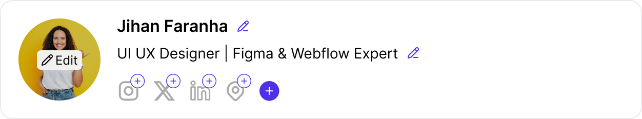 You can edit your profile picture, display name, and bio directly on the page to match your brand identity or personal profile.